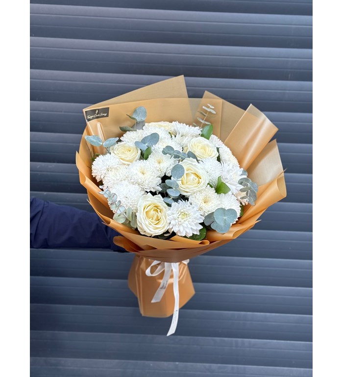 Beyaz ve ithal birinci kalite ürünlerden oluşan bir buketdir