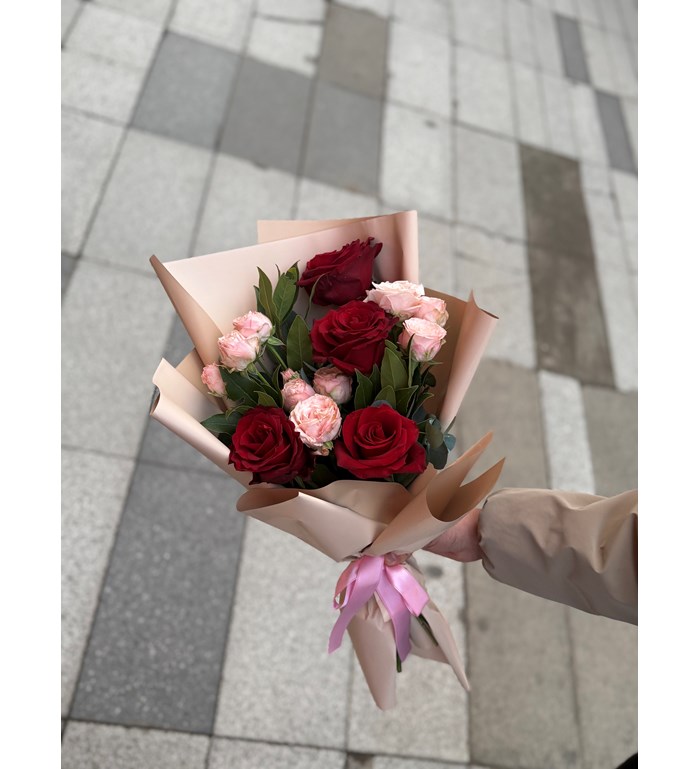 Üç adet çardak gülü üç adet kırmızı gül'den oluşan güzel bir buket'tir